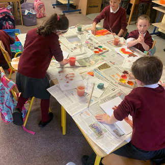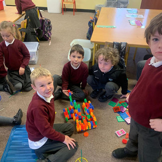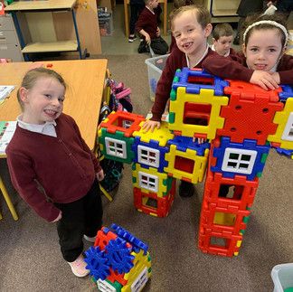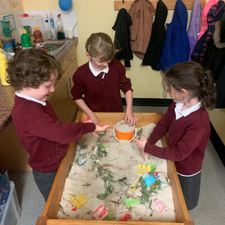 We had a great time learning about the changes that happen all around us as the season starts to change. We collected so many things for our autumn table, learned about animals in hibernation and used different materials to make safe places for the animals to sleep in the winter. We visited the farmer's market for Aistear and had fun building treehouses out of polydrones. We also had fun making lots of autumn art!